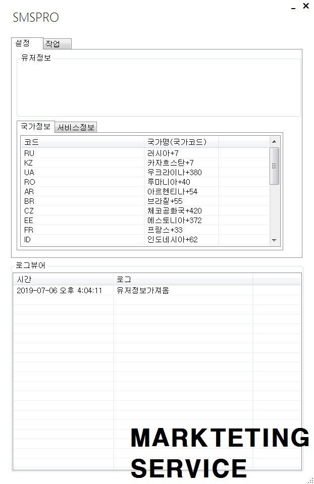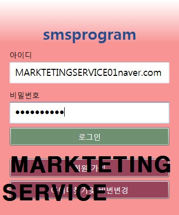 마케팅서비스- 통합번호인증프로그램은?결제하시는 분들만 회원제로 운영되고 있습니다.사용자가 직접 회원 가입하여 프로그램에 로그인해서 언제 어디 서든 편리하게 사용이 가능한 프로그램으로 보다 애프터 관리 서비스가 쉽게 될 수 있도록 만들었습니다. 본 프로그램은N사, K사, 구글, 트위터, 인스타그램, 페이스북등 통합적으로 번호 발급이 가능한 서비스입니다, 본 프로그램은 사용자가 쓰는 데이터만큼 충전해서 사용하는 서비스입니다, 1회 번호 발급 시 국가, SMS인증 종류에 따라서 최소 50원 최대 200원까지 마일리지가 소모됩니다,번호를 발급 받는다고 마일리지가 차감 되지 않습니다. 실제 메세지를 수신했을 시에만 마일리지가 차감,프로그램 구입 후 번호발급 및 인증번호 수신이 원활하지 않을 경우. 1개월 이내 100%환불해드립니다.(단순 변심에 의한 환불은 불가 합니다)