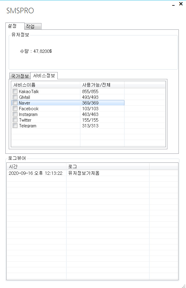 실제 해외 유심 을통해 번호를 발급 받고 인증 문자를 수신해주는 프로그램입니다, 해외번호발급프로그램은 N사, K사, 페이스북, 구글, 인스타그램, 라인, 트위터, 유튜브, 텔레그램등 지원됩니다.본 프로그램은 SMS 인증 문자를 받아주는 프로그램입니다, 번호는 무제한 발급 가능합니다,번호를 발급 받는다고 마일리지가 차감 되지 않습니다. 실제 메세지를 수신했을 시 에만 마일리지가 차감 마케팅서비스 -구동영상 트위터 계정 생성프로그램, 트위터 계정 무한생성